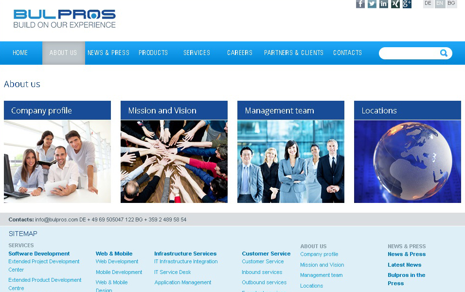 Since the establishment of Bulpros, the company has grown from 5 to more than 500 FT employees, and over 1,000 part-timers and contractors. Its clients and partners range from the likes of Cisco, Microsoft, IBM, and other large MNC companies, to a variety of mid-sized, smaller and startup firms. In addition to services, Bulpros has started developing its own innovative products, such as a connector between Cisco infrastructure and productivity suites like IBM Connections and SharePoint called Jabborate, and an ERP system for recruitment agencies called Staffico.