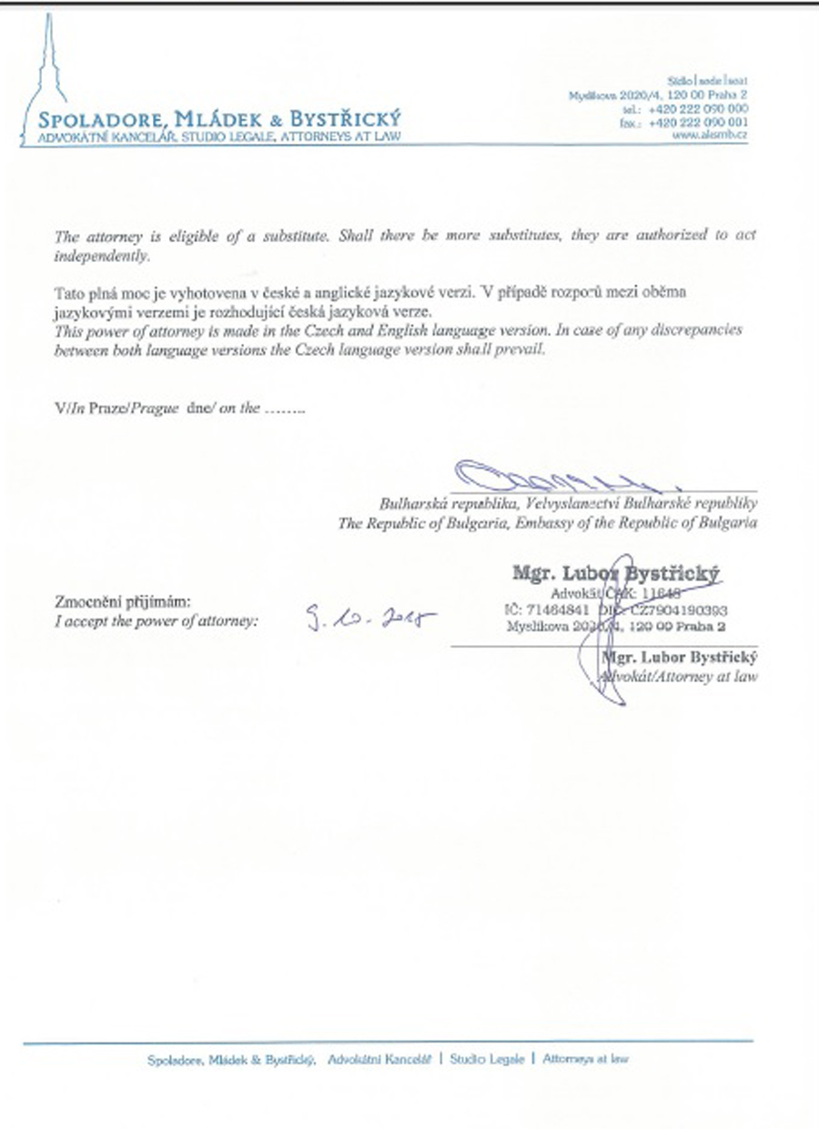 Тексг на съобщението на чешкия адвокат в превод на български: