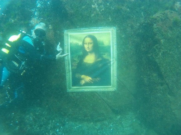 Подводните изложби край Приморско започнаха преди няколко месеца с представяне на световни репродукции. Никулден обаче е избран символично за официалното откриване на подводната художествената галерия.