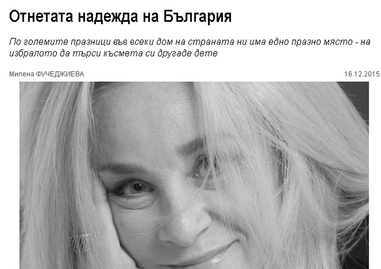 Текстът, публикуван по-долу, е провокиран от наскоро излязъл текст на Милена Фучеджиева – „Отнетата надежда на България“ – и полемизира с част от тезите на г-жа Фучеджиева. Темата за емигрантите, причините, поради които са заминали, и причините за тяхното връщане/не връщане в Родината, са предмет на тази полемика.