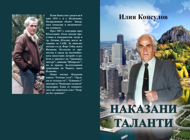 Премиерата на книгата на Илия Консулов „Наказани таланти” ще се състои на 13 март т.г. от 1:00 pm в православния храм „Св. Иван Рилски” в Чикаго. Съставителят и редактор на книгата Райна Недялкова-Качулкова, чийто текст е поместен по-долу, отправя искрена покана към всички желаещи да се срещнат с поета Илия Консулов при представянето на неговата биографична книга, да дойдат на 13 март в залата при храма „Св. Иван Рилски“.