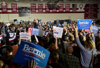 Сандърс не е Барак Обама и няма неговата възпламеняваща речовитост от 2008-ма. Не е и самовлюбеният Доналд Тръмп. Сандърс държи микрофона с лявата ръка, а дясната движи нагоре и надолу, докато казва: „Нищо няма да се промени, докато не се осъществи политическа революция. Това не са просто думи. Това означава, че докато правителството във Вашингтон не започне да представлява хората, а не милионерите, нищо няма да можем да променим.“ Прекъсва. Кашля.