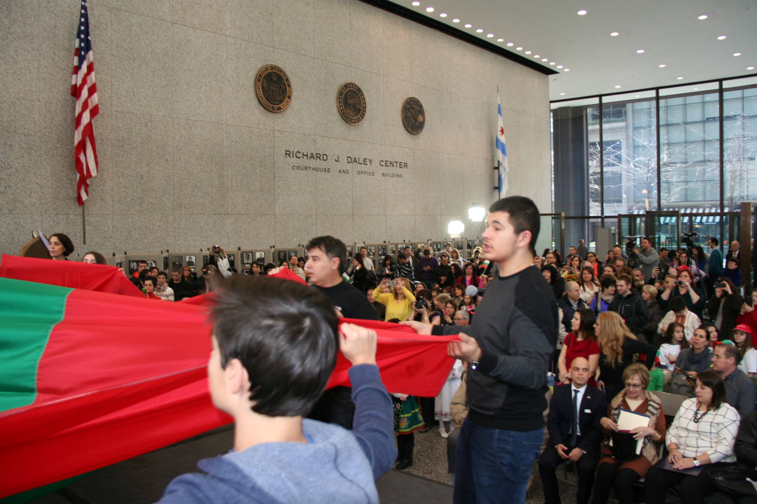 Традицията да се издига българското знаме в центъра на Чикаго датира отпреди 56 години. През февруари 1960 г. група български имигранти се срещат с градоначалника Ричард Дейли. Разказват за родината си, за нейната история и за годините на петвековното османско владичество. Впечатлен от историята на народа ни, кметът издава специална Прокламация, с която обявява 3-ти март за Български ден в Чикаго. Тази Прокламация дава право в центъра на града в 12.00 ч. на обяд на 3-ти март да се издига българското знаме. Този ритуал се повтаря няколко години, но по-късно, вероятно след смъртта на градоначалника, е забравен.