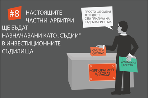 Не само, че системата позволява на фирмите да заобикалят установените съдебна процеси, но също така им позволява да оспорват и прекратят действието на предишни съдебни решения. В световен мащаб се надига все по-голямо обществено недоволство срещу използването на механизма ISDS и по-специално неговото пагубно въздействие върху демокрацията и политиките, действащи в обществен интерес.