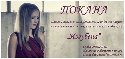 Младата и обещаваща певица Натали Ангелова се готви за премиерата на дебютната си песен „Изгубена“ и видеоклипа към нея.