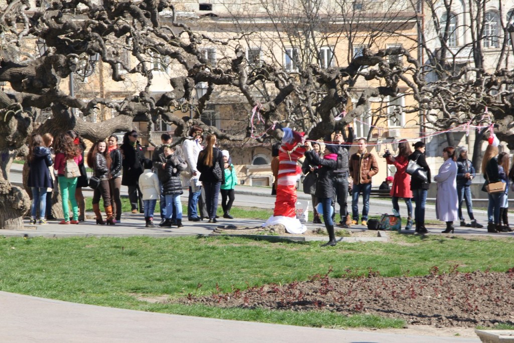 Бел.ред.: Снимките са от предишното изпращане на Баба Марта от българите в Одеса. Мартениците и тази година ще бъдат окачени на същото дърво.