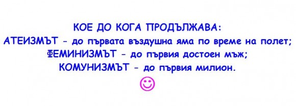 Попитали един мъдрец, последователите на кое движение са най-упорити и най-трудно могат да бъдат вкарани в правия път – последователите на атеизма, на комунизма или на феминизма?