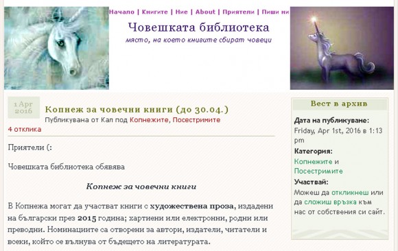 Отличените издания ще бъдат обявени през декември и Човешката библиотека активно ще помага с разгласата и разпространението им.