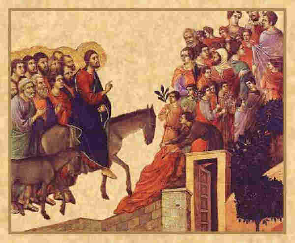 Шест дни преди своето възкресение Иисус е бил посрещнат на портите на Ерусалим със слава и почест, като ликуващата тълпа е обсипвали пътя му с палмови клонки. Той е бил приветстван като Син Божи, след като на предния ден е върнал от мъртвите Лазар, брата на Марта и Мария.