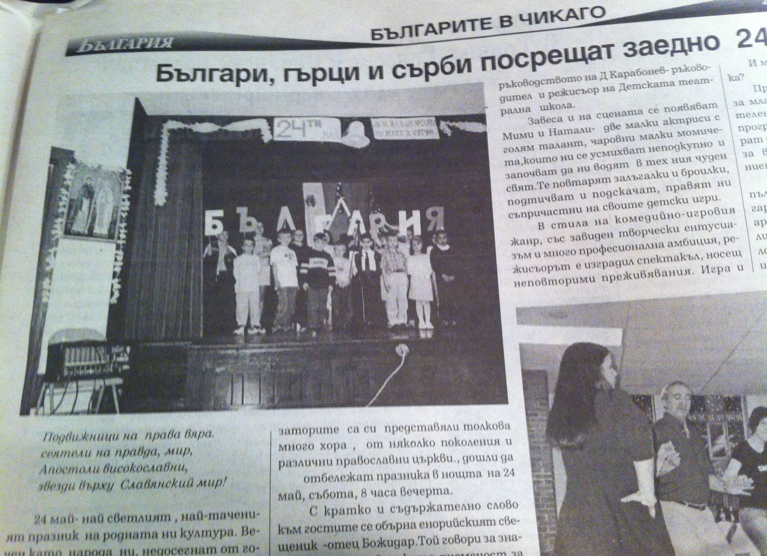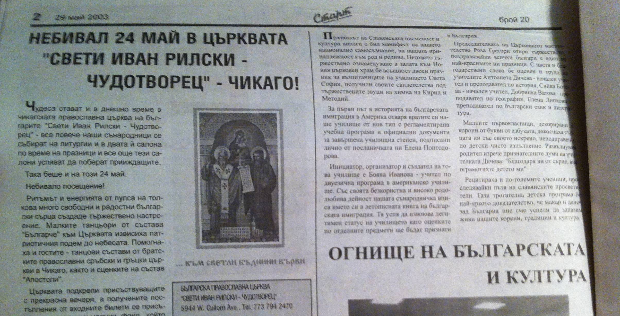 На снимките долу – няколко от заглавията на чикагските вестници „България“, „България 21 век“ и „Старт“ отпреди 13 години – на 24 май 2003 г.