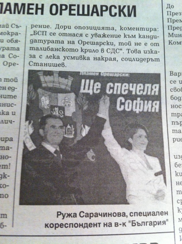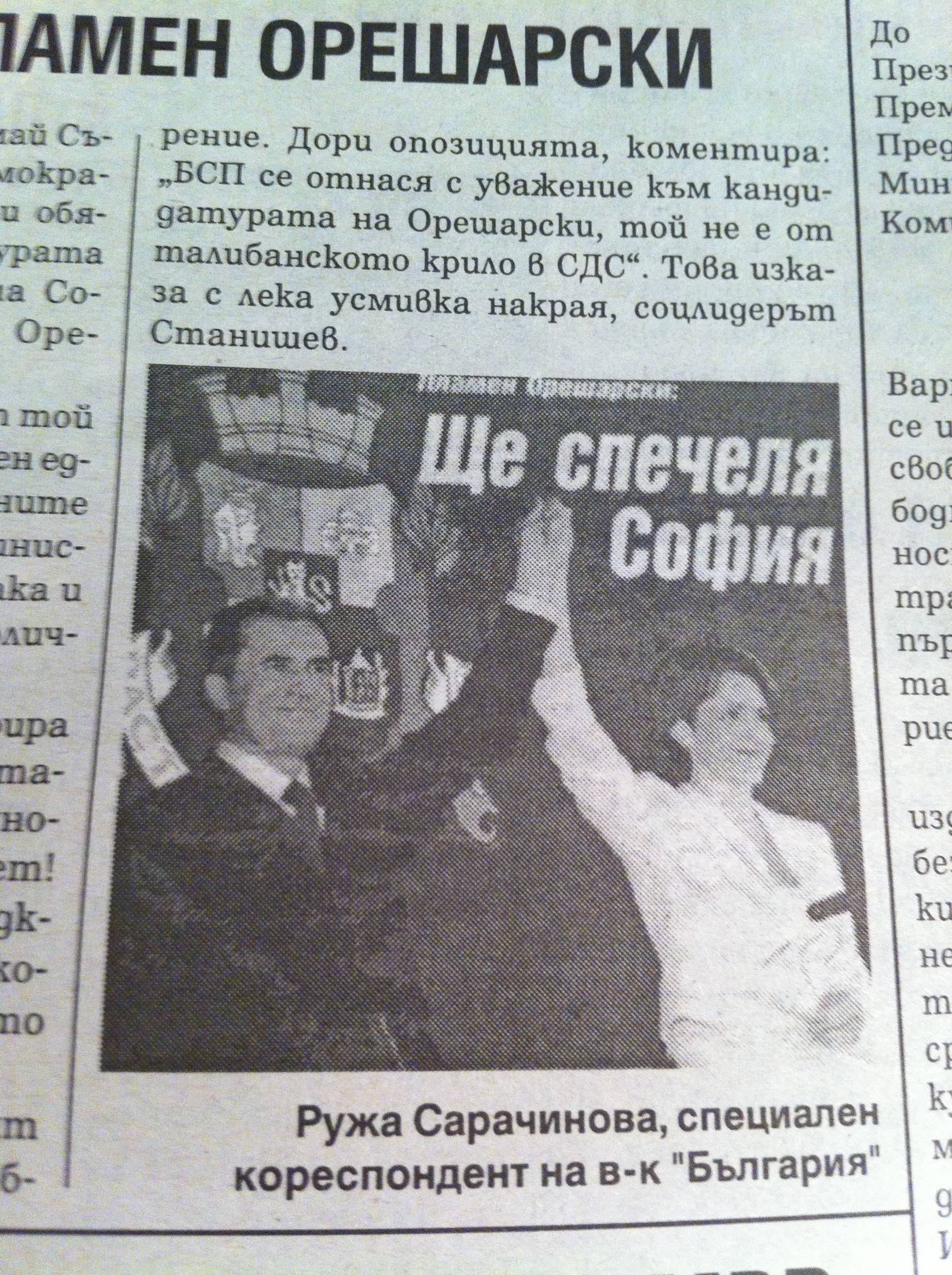 В раздела за политически новини вестникът съобщава в заглавие: „СДС издигна кандидатурата на Пламен Орешарски за кмет на София“.