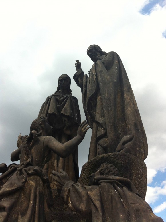 На снимката горе – паметникът на Светите братя Кирил и Методий на Карловия мост в Прага.