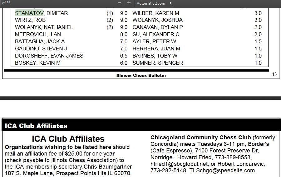 По онова време придружавах 13-годишния си син Димитър Стаматов на „Чикаго-Опен“ (най-голямото шахматно състезание в Илинойс, проведено между 23-27 май 2003 г.). Там той спечели лидерското място сред децата и първия си чек от $800. Което стана причина двамата заедно да списваме шахматната рубрика на в. „България“, където разказвахме интересни истории за световните шампиони в този мъдър спорт. Във всеки брой имаше шахматна задача и анекдот. Ето един такъв: