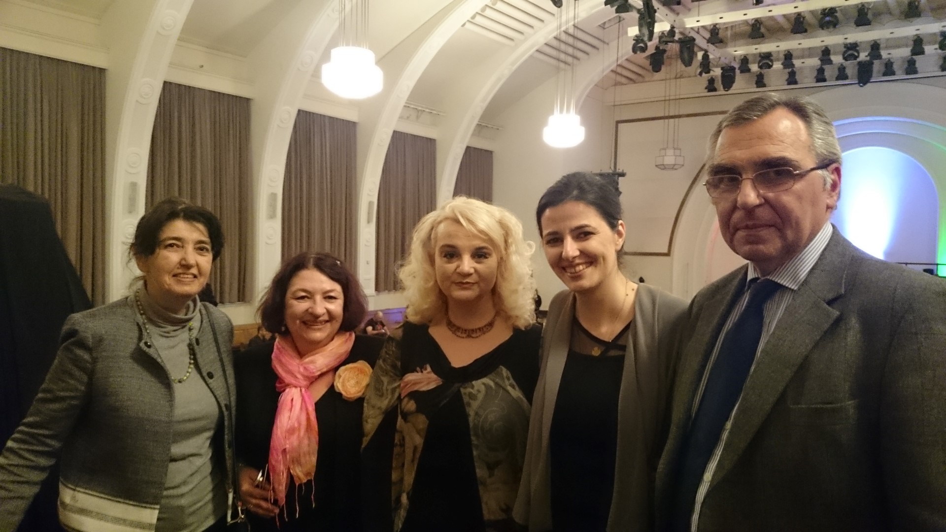В началото, на затъмнената сцена, заедно с навлизащото осветление на прожекторите, най-напред прозвучаха мъжките гласове на изпълнителите от прочутия ни Лондонски български хор на Десислава Стефанова: „Девойко мари, хубава”… Родопа планина лъхна с мириса на бориките в залата. И когато жените подеха”Мое со бално по-множко, юначе…”, в очите на мнозина имаше и сълзи. Г-жа Десислава Стефанова е ръководител на такъв хор за народно пеене и в Швейцария, а освен това е и преподавател в нашето училище по народно пеене. Невероятна е, невероятен е и нейният хор, който всяка година по няколко пъти препълва с почитатели известни зали в Лондон (и не само). Затова тя бе номинирана тази година за отличието на ДАБЧ – „Българка на годината – 2015”.