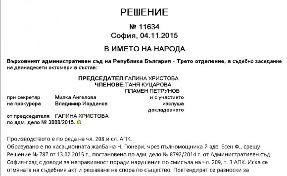 Петчленен състав на Върховния административен съд ще има последната дума по този казус. Който показва, първо, че един и същи казус и законови текстове могат да се четат и тълкуват от Административен съд – София град по противоположен начин, след като по-висшата инстанция, ВАС, връща на по-низшата делото за доразглеждане.