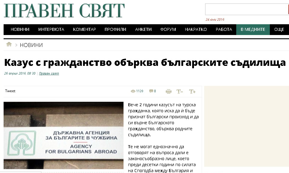 „КАЗУС С БЪЛГАРСКО ГРАЖДАНСТВО ОБЪРКВА БЪЛГАРСКИТЕ СЪДИЛИЩА“ – пише „Правен свят“. Хронологията на случая „Нурджихан Гюнери“ и противоречивите тези и становища по него са описани от юридическото издание в публикация от 26 април т.г. Поради важността на казуса в правно отношение, препубликуваме материала на „Правен свят“, допълвайки темата с още нагледна документална информация и последващи коментари.