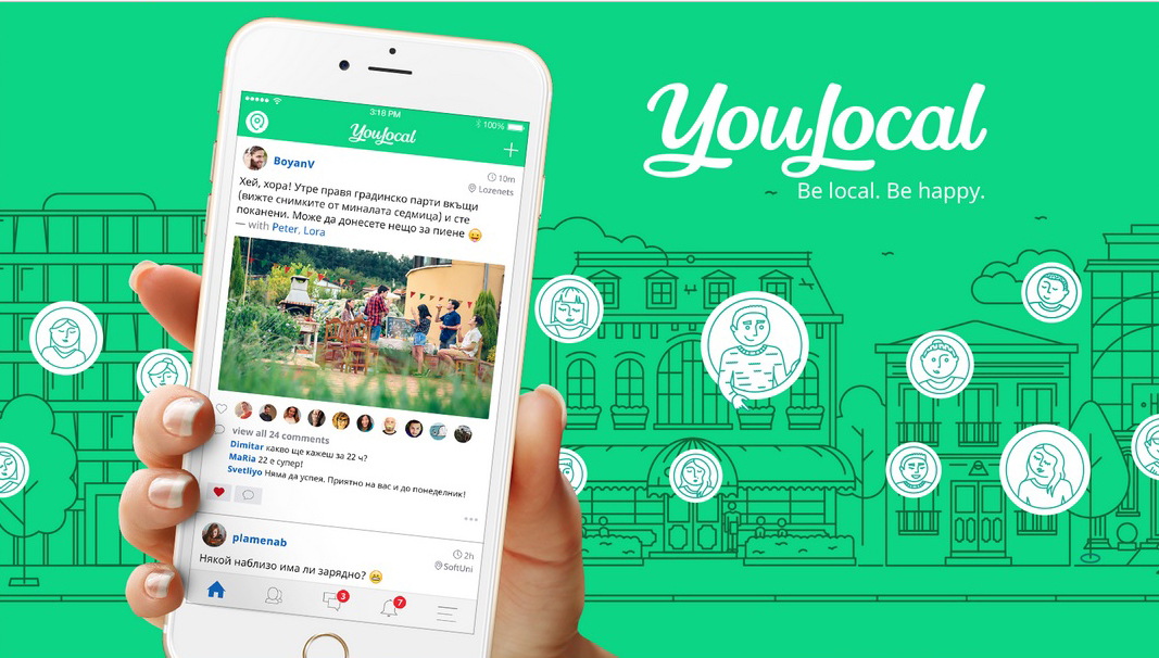 YouLocal е иновативно мобилно приложение, дело на български екип. Това е друг, революционен начин за социално общуване, който помага на хората да се върнат в реалния свят. „Светът никога не е бил толкова малък, но сме по-самотни от всякога. Ей, горе главата! Вече може да се чувстваш местен навсякъде“ – както се казва в клипа по-долу, представяш приложението. С YouLocal се откриват интересни хора и неща за правене на конкретното място, където човек се намира, в района, където живее, или където е заминал. Приложението e напълно безплатно и може да се свали от App Store и Google Play.