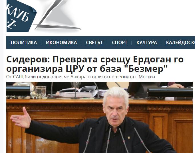 В превод: Той (Жириновски) допълни, че Ердоган в усилията си да задържи властта си се опитва да развихри военна истерия. Под претекст за военен конфликт, турският лидер ще се опита да смени конституцията и да промени държавното управление – от парламентарна към президентска република.