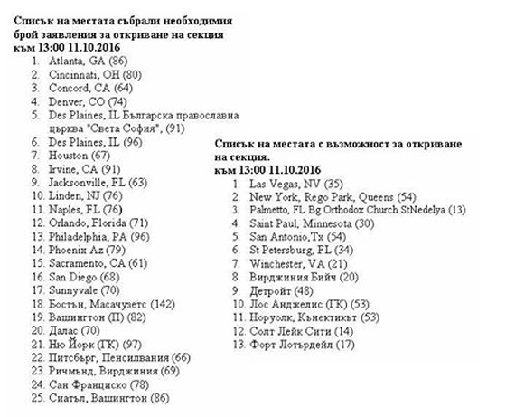 Актуален списък за откриване на секции в САЩ. Имаме шанс за още секции.