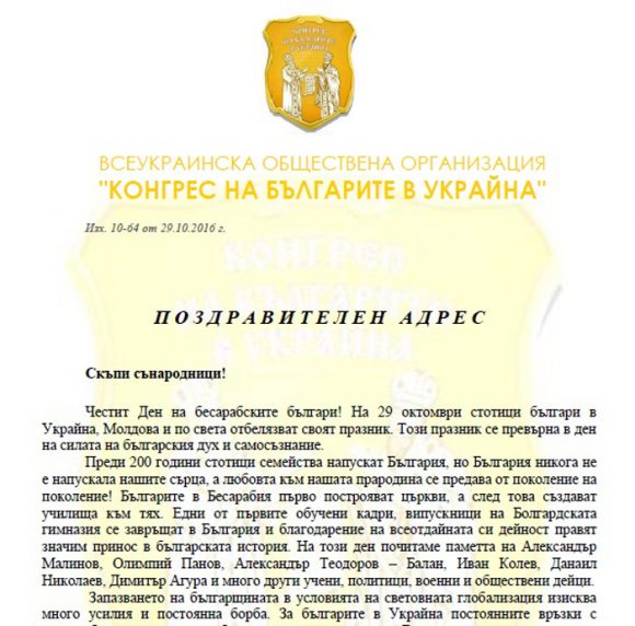 Честит Ден на бесарабските българи! На 29 октомври стотици българи в Украйна, Молдова и по света отбелязват своят празник. Този празник се превърна в ден на силата на българския дух и самосъзнание.