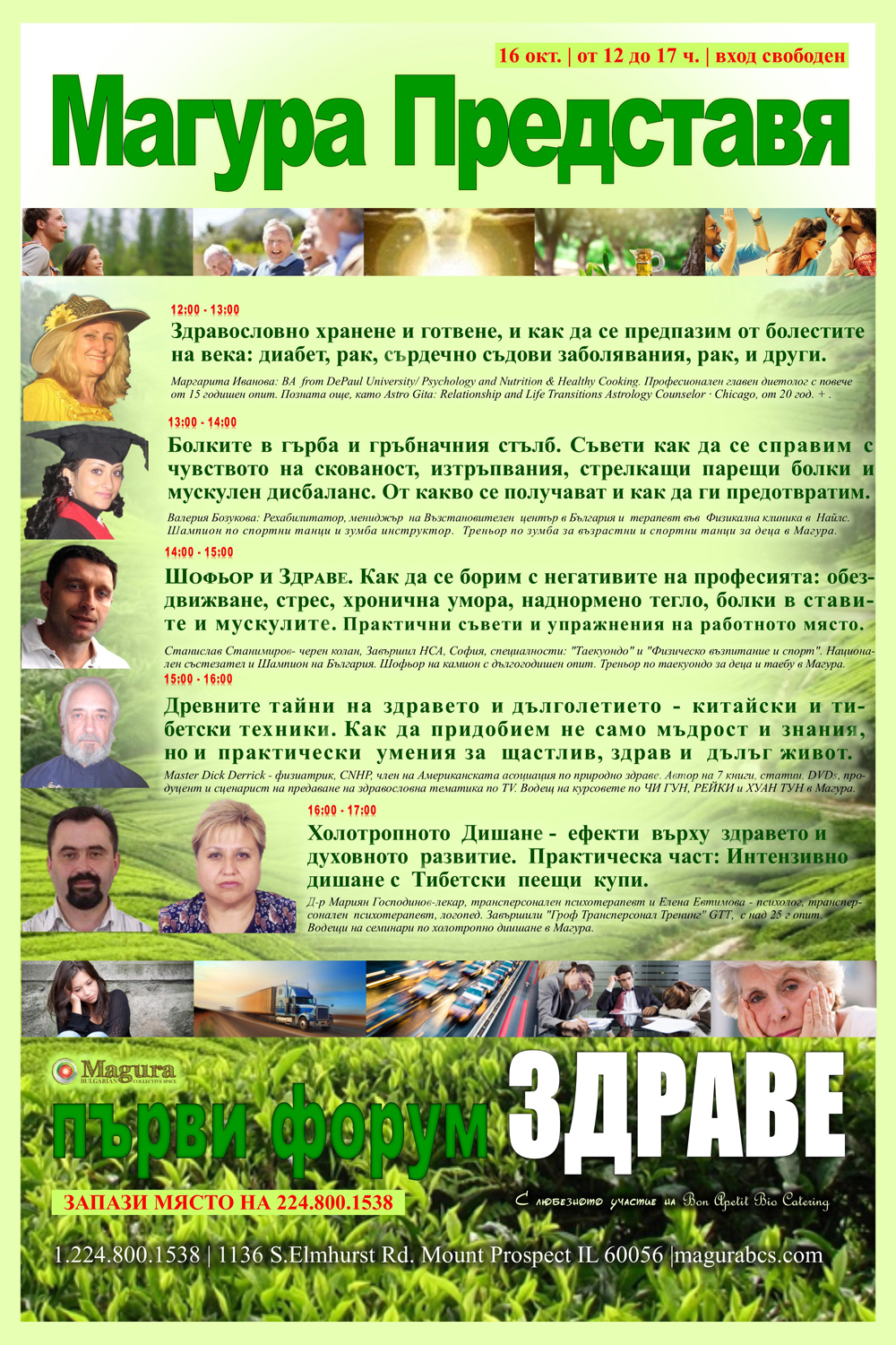 Темите ще бъдат за: здравословно хранене и готвене, болки в гърба и гръбначния стълб, здравословни проблеми при шофьорите, тайни на здравето и дълголетието, холотропно дишане.