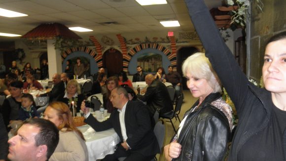 Знаещи да се веселят, българите напълниха салона с желание за много веселба и танци. Прекрасните музиканти от „Дует Минкови“, Зоя и Жоро, не ги оставиха да чакат и бързо вдигнаха градуса на настроението в залата. След молитва, кратко слово и приветствие за добре дошли, свещеникът на храма освети храната за празничната вечеря и пожела весел празник.