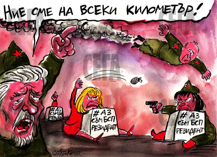 След садо-мазо партийната секретарка леля Цъца, проститутколозите са класирали някакъв генерал Радев, който е кандидат на БСП. Самото БСП се пъчи като пряк наследник на БКП, което пък неизбежно ни тласка към извода за близко роднинство с ГЕРБ. По принцип ген. Радев е летец, ама като няма самолети, човекът се приземява до политик. Всъщност в Президентиада ‘2016 болезнено се набива на очи масовото участие на генерали, адмирали, контраадмирали, реконтраадмирали и други подобни военни първенци. Причината е ясна – България няма армия. Имаме колкото щеш генералисимуси и цели полкове висши офицери, но те нямат кого да командват. Опасност от военен преврат няма. Приказките за воинската доблест, чест и достойнство са набутани в ъгъла. С присъствието си в порноспектакъла, българските генерали легитимират крадливите български политици и застават на страната на ДОПГ срещу народа. Жалка, срамна родна картинка.