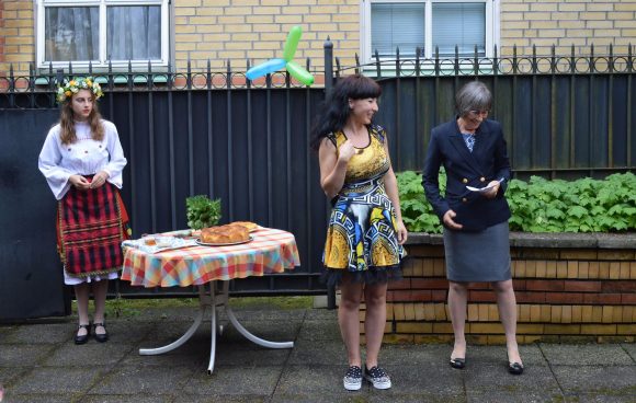 Приканвам родителите да заредят фотоапаратите (в днешно време вече се казват телефони 🙂 ), защото това множество прилича на повторен или по-скоро на още един училищен празник. Поздравявам всички присъстващи с прекрасното им начинание, пожелавам им спорен труд и прочитам приветствието на д-р Ирина Владикова, председател на Асоциацията на българските училища в чужбина: