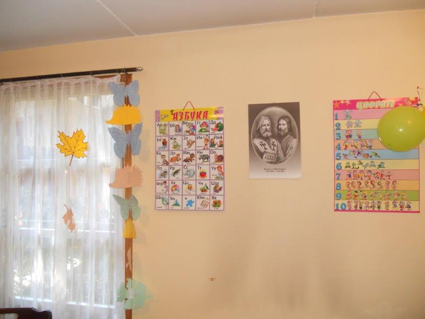 Е, няма как, веднага го изправям пред портрета на Кирил и Методий и го снимам с тях. Съименници през вековете, а нашето дете – наследник и продължител. Сигурна съм, че ще запомни този ден до края на живота си. Ще го помня и аз, и посланик Румяна Митрева, двете развълнувани учителки и огромният брой деца (в сравнение с първия ден на откриване на училището днес вече дойдоха 15 нови ученици). Трите класни стаи се препълниха (Боже, ще стигнат ли местата да настаним учениците!). А родителите – бащи и майки, бебета, братчета, сестричета! Изпълниха дори стълбището на кооперацията и заничаха през широко разтворената врата.
