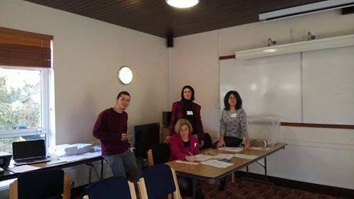 Членове на СИК – Амстердам. Снимка: Елица Йорданова, директор на Българското училище в Амстердам, организатор на избирателната секция.