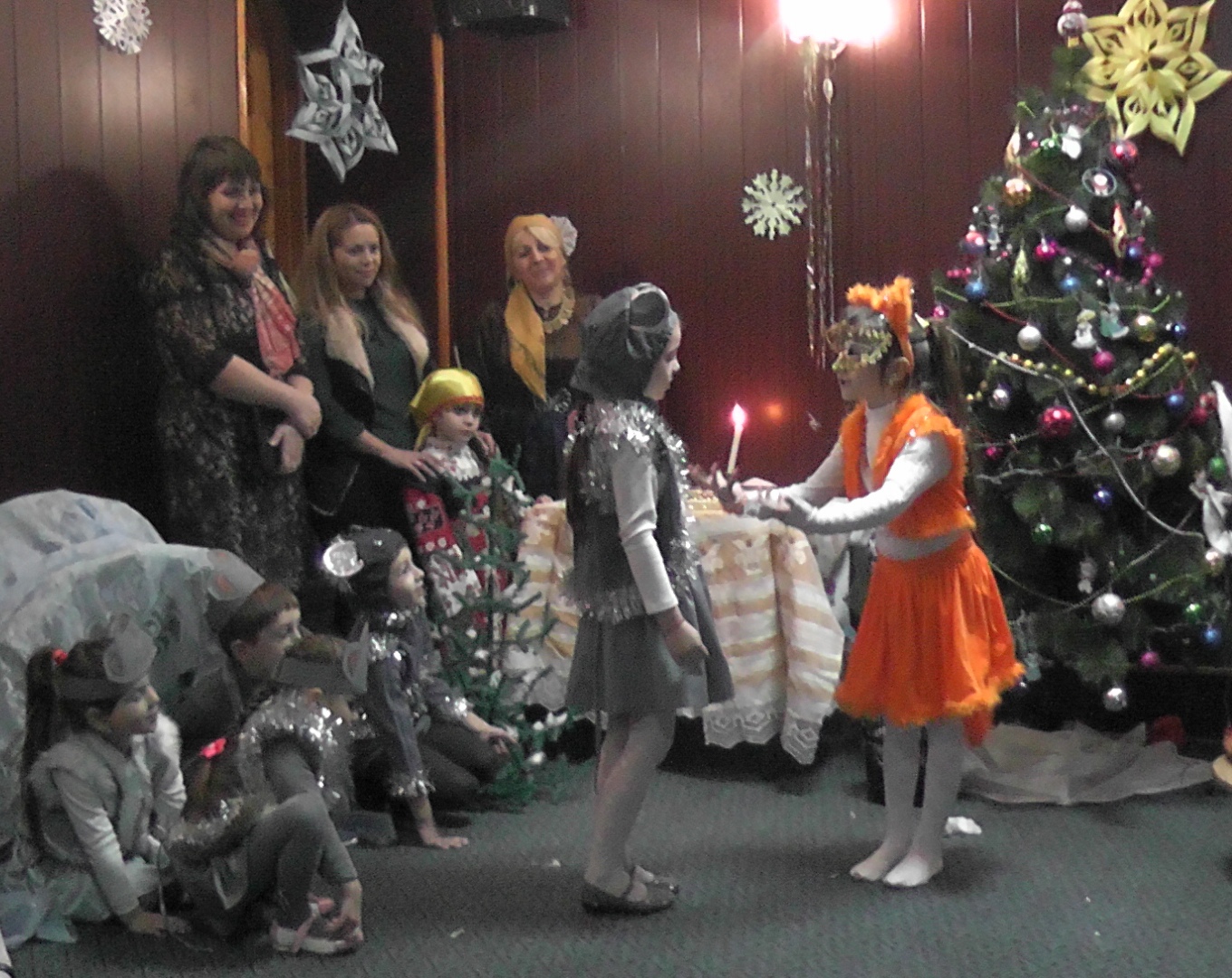 След „дълго“ очакване, по време на което звучаха традиционни стихове и песни, посветени на двата празника, пристигна «истинският Дядо Коледа» със Снежанка. Оригинални бяха „момиченцата-елхички“ с необичайни български танц. И, както винаги, «гвоздеят на програмата» бе изпълнението на малките театрали. Те показаха сценката «Катеричкина Коледа» и всички разбраха, че и горските обитатели посрещат този празник.