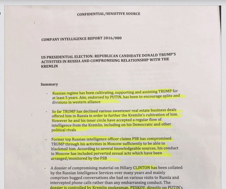 По-късно ръководителят на американското национално разузнаване Джеймс Клапър съобщи, че в беседа с Тръмп са „обсъдили документ на частна охранителна компания, който в последните месеци е бил широко разпространен в средствата за масова информация, сред членове на Конгреса и сътрудници на неговите органи още преди да стане известен на разузнаването“. Той заяви официално, че документът не е продукт на разузнавателните служби, а на частна агенция за охрана, но отказа да я назове.