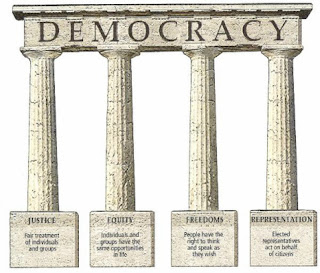 Демокрацията е форма на управление, която дава равни възможности на всеки, благодарение на жребия, и следва двата принципа: непрофесионалисти и кратки мандати.