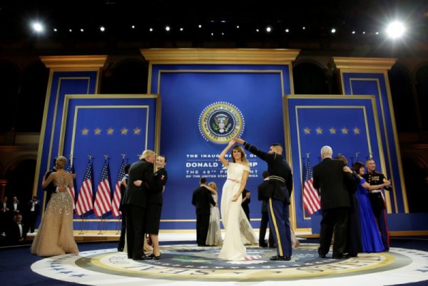 По-късно на два от трите бала, организирани в негова чест, новият президент на САЩ и съпругата му Мелания танцуваха под звуците на песента на Франк Синатра „My Way“ („По моя начин“). На втория бал президентът попита присъстващите дали да продължи да използва Тwitter. Множеството отвърна с одобрителни викове. В отговор Тръмп каза, че общуването му с неговите над 20 милиона последователи в Тwitter е „начин за заобикаляне на непочтените медии“.