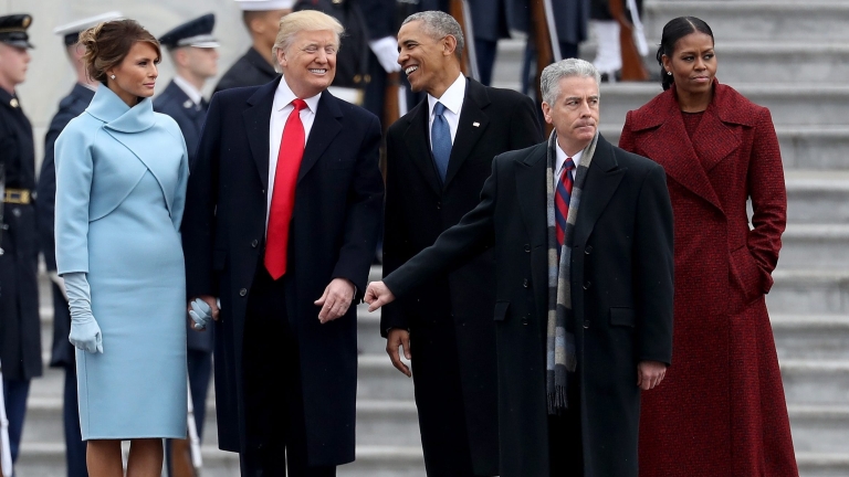 „Днес ние не само не прехвърляме властта от една партия към друга, а прехвърляме властта от Вашингтон и ви я връщаме – на народа“ – каза Доналд Тръмп. Той благодари на Барак Обама за плавния преход в предаването на властта.