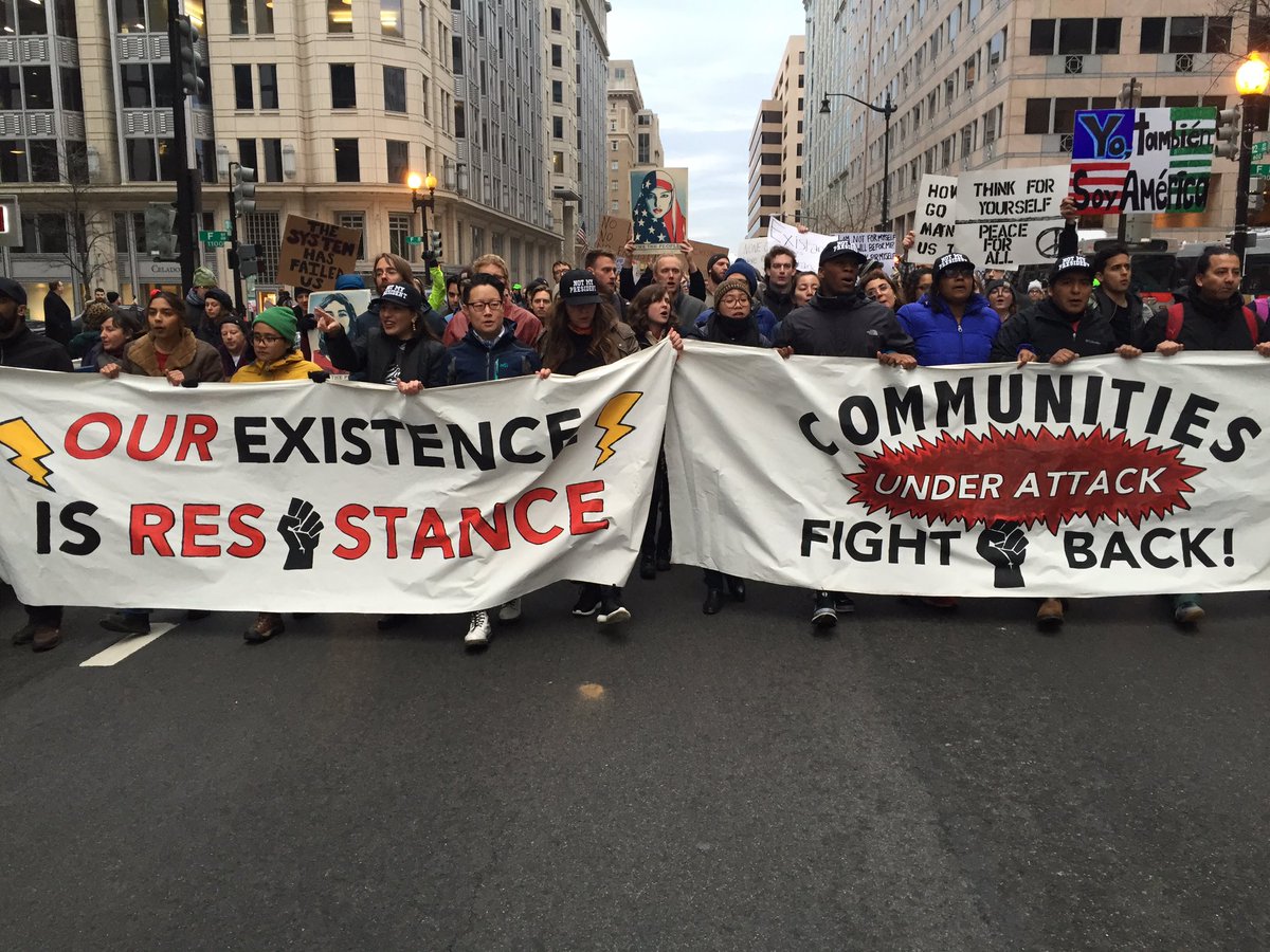 Ден преди вспътването на Тръмп в длъжност, при демонстрации и събитие, организирано от симпатизанти на Тръмп, е имало сблъсъци между поддържници и противници на новия президент. Протестиращи са скандирали „Позор“, „Вървете си, нацисти“, “ Не на нацистки САЩ“ и др. подобни. Протести имаше и в самия ден на инагурацията на Тръмп.