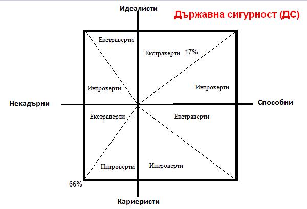По втора точка да допуснем, че независимо от многото власт и облаги на ДС, идеалисти са се натискали да попаднат в тази служба не по-малко от кариеристите, вярвайки че така ще помогнат да настъпи едно по-светло бъдеще. И накрая, по трета точка да допуснем, че екстравертите в ДС са били, колкото интровертите.