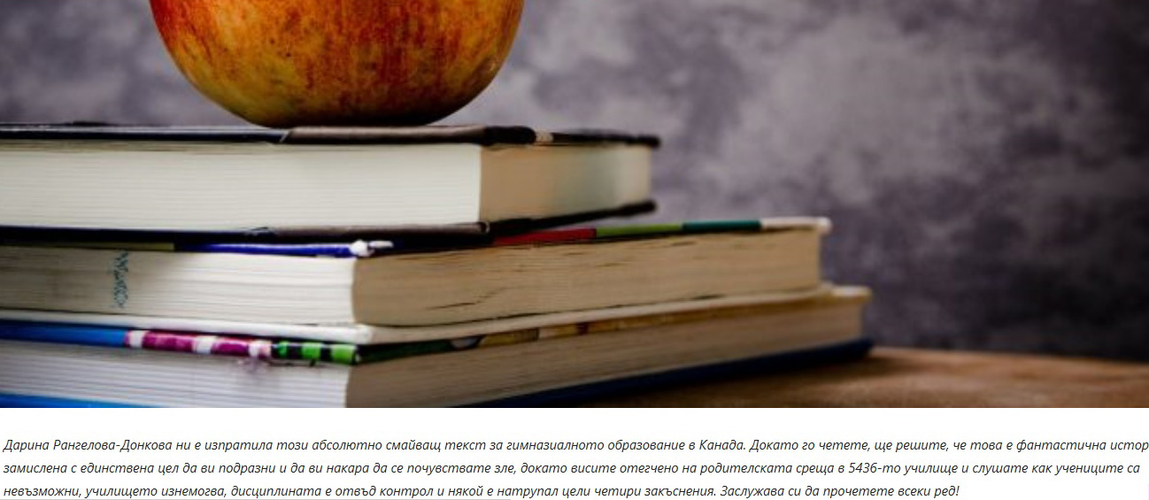 *Б.а.: Това са лични впечатления – на мен и сина ми, от конкретно училище в Провинция Онтарио.