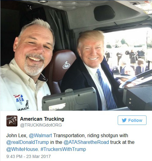 It was an honor to welcome so many truckers and trucking industry leaders to the @WhiteHouse today! pic.twitter.com/M1veooVBNE