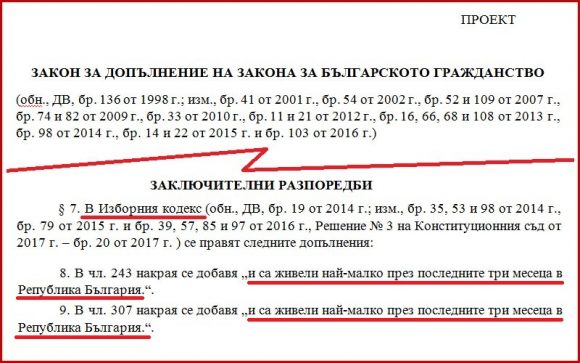 А сега да видим какво предлагат да се добави към всеки един от тези 2 члена: „и са живели най-малко през последните три месеца в Република България.“ ТОВА ОЗНАЧАВА: