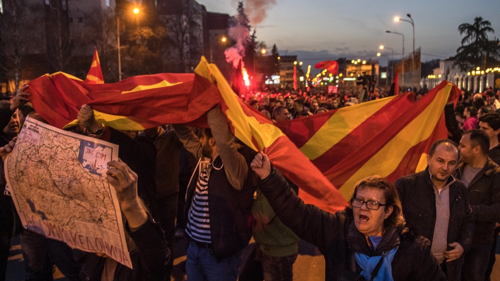 Гражданите, които протестират в Скопие срещу „Албанската платформа“, щурмуваха тази вечер македонския парламент и влязоха в него. Протестите се организират от Гражданското сдружение „За единна Македония“ още от края на месец февруари, информира Нова ТВ. Привърженици на сдружението протестират всеки ден с искане за нови предсрочни избори в Македония. Протестиращите са щурмували сградата на парламента минути след като депутатите от Социалдемократическия съюз на Зоран Заев и депутати от албанските партии са избрали Талат Джафери за председател на Народното събрание.