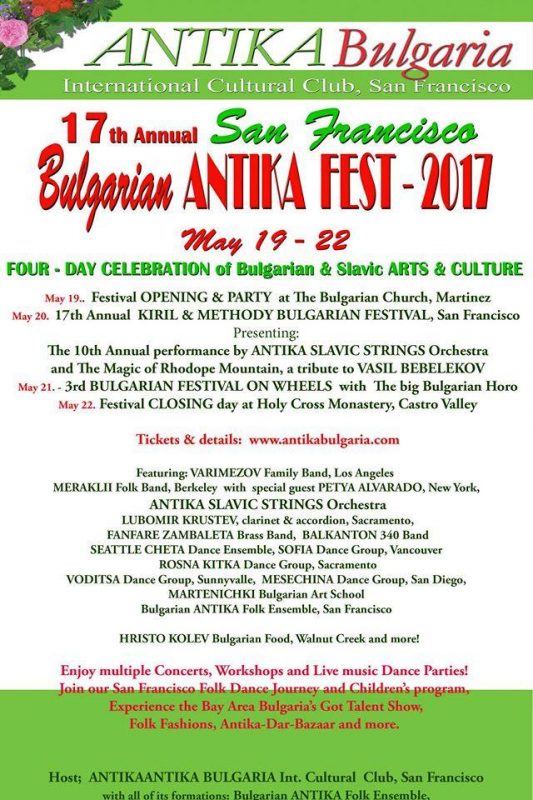 17-ти годишен фестивал на българските изкуства и култура Св. Св. Кирил и Методий, Сан Франциско 2017
