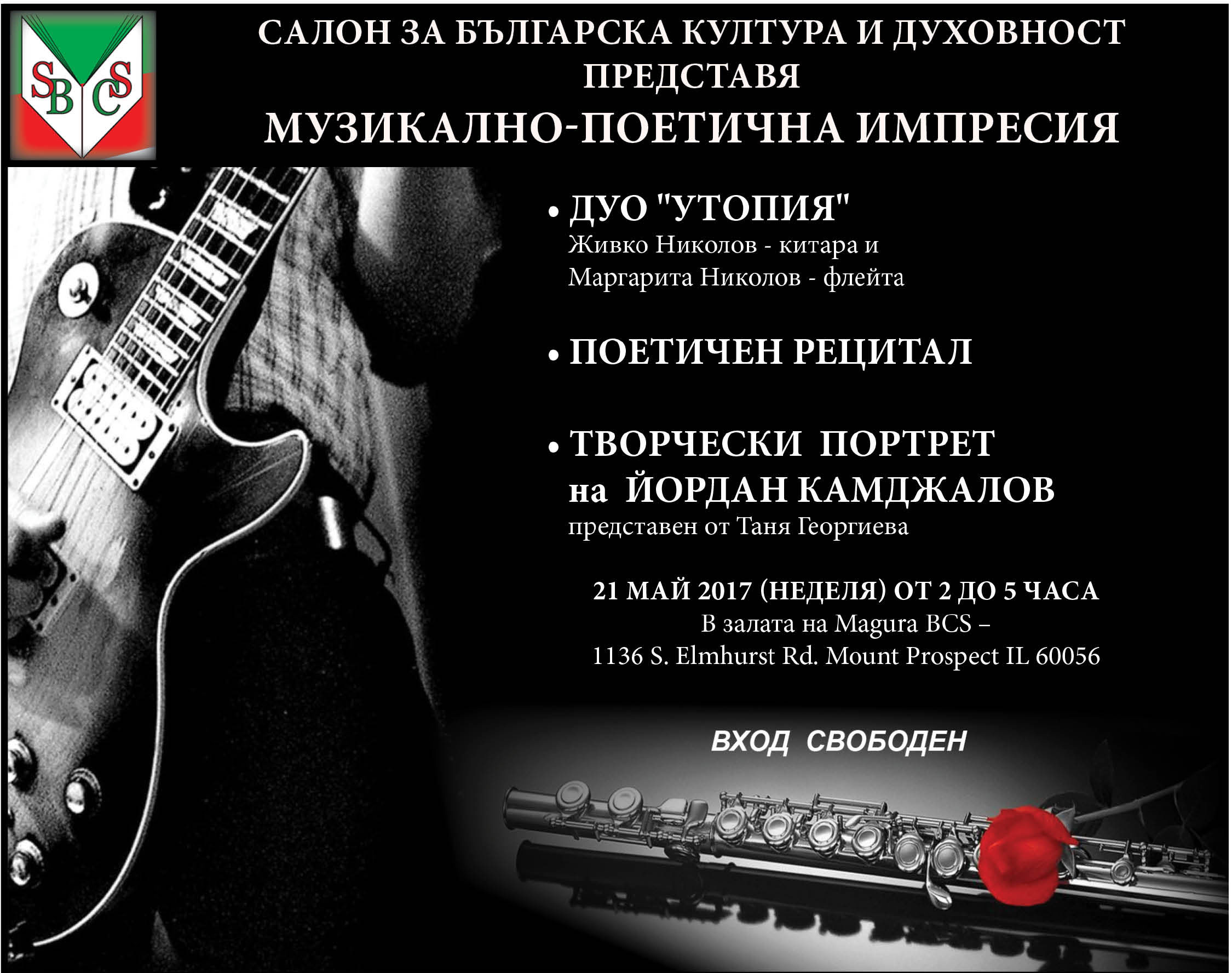 Изпълнение на Дуо „Утопия” – Живко Николов – китара и Маргарита Николов – флейта. В програмата: произведения на Пиацола, Уркузунов, Барток и др.