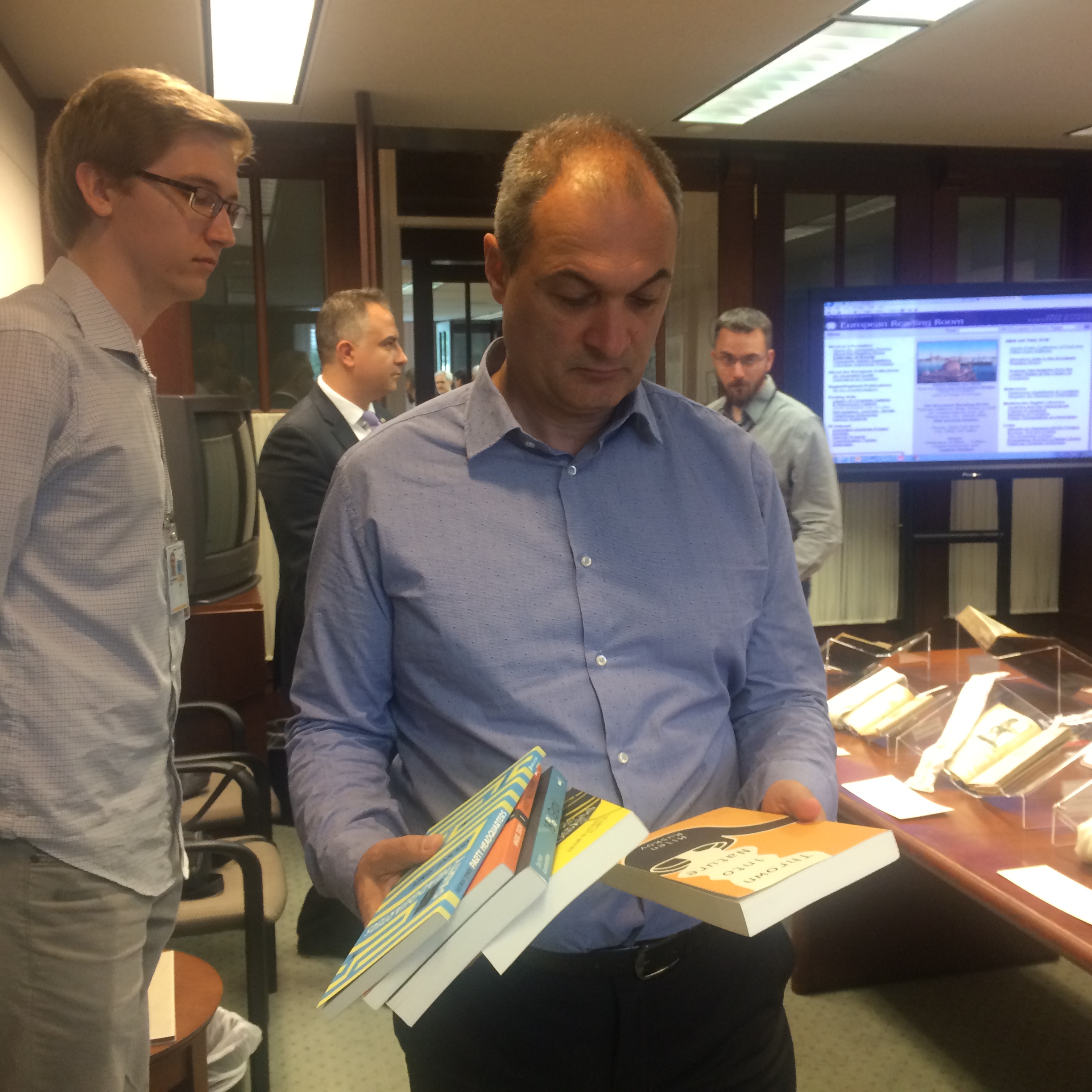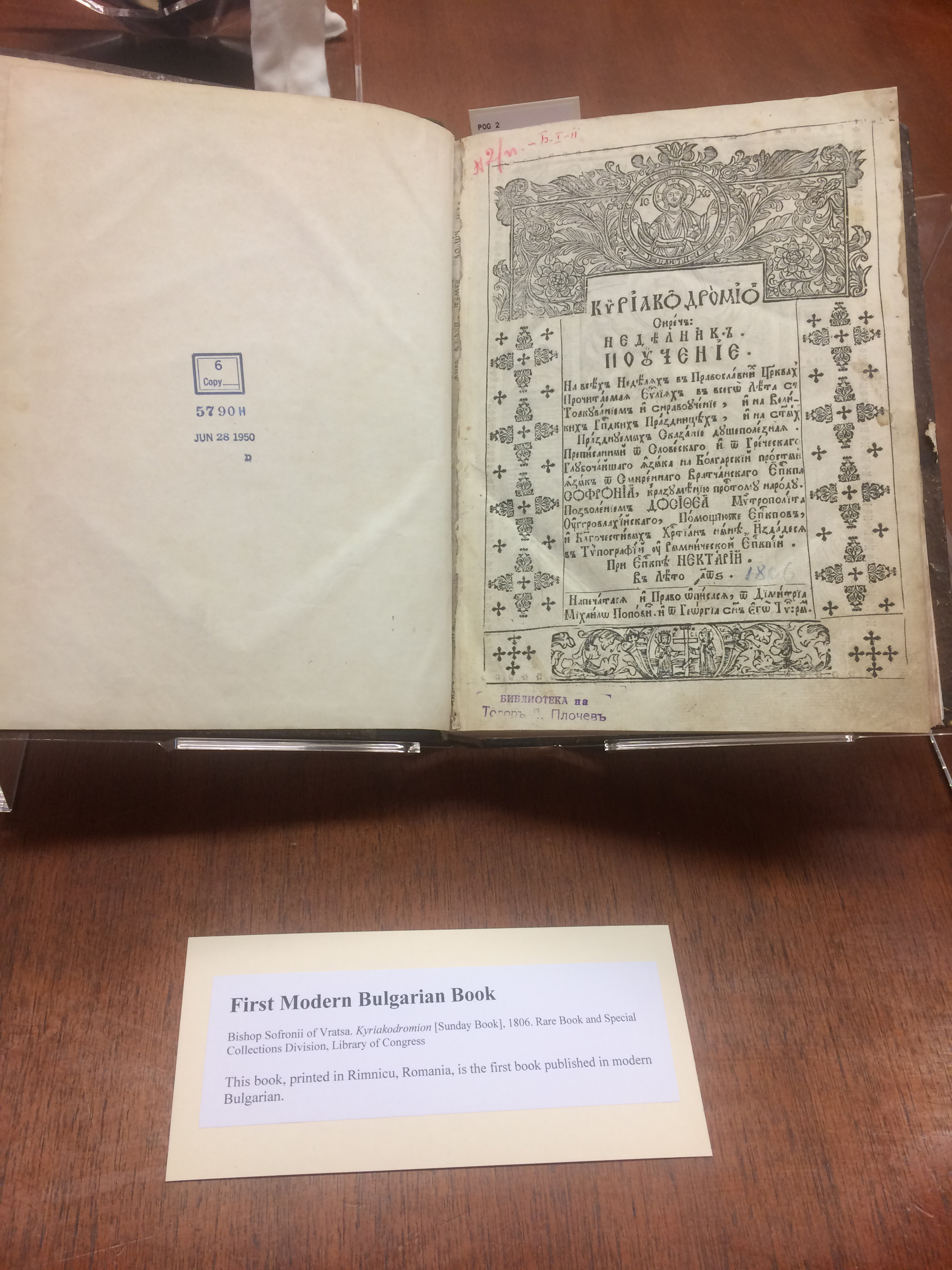 След това г-жа Анжела Канон заведе присъстващите на обиколка из Конгресната библиотеката. Тя показа някои редки книги от фонда на Българската колекция, сред които „Кириакодромион сиречъ Неделникъ“, списание „Любословие“ от 1842 г., „Езопови басни“, преведени от Петко Славейков (1852), „Райна, княгиня Българска“, преведена от Йоаким Груев (1852) и разказа за Тодор Д. Плочев, издател на правна литература от София, който е направил най-голямото дарение на български материали в историята на Конгресната библиотека.