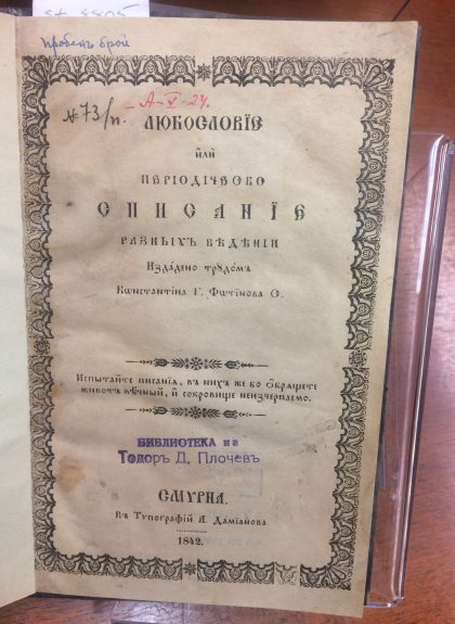 Днес, на 24 май 2017 г., Българската секция на Конгресната библиотека бе попълнена с всички издания на годишния алманах „Любослов“ на Съюза на българските писатели в САЩ и по света, от 2012 г. досега; с книгите на Симеон Гаспаров „Врати от небеса, или когато Джими Хендрикс беше българин“ и „Бизони край Дунава“; с „18 % сиво“ на Захари Карабашлиев, с литературния сборник „Черга пъстроцветна“ (дело на нашия редакционен екип).