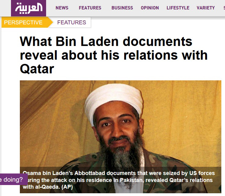 Голямата телевизия Al Arabiya, което е собственост на саудитци и свързани с тях лица, обвини ръководството на Катар, че е поддържало тероризма на Осама бин Ладен, като се позова на документи, заловени при акцията срещу него.