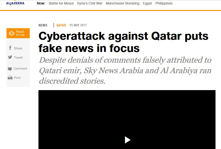 http://www.aljazeera.com/news/2017/05/cyberattack-qatar-puts-fake-news-focus-170525190113354.html