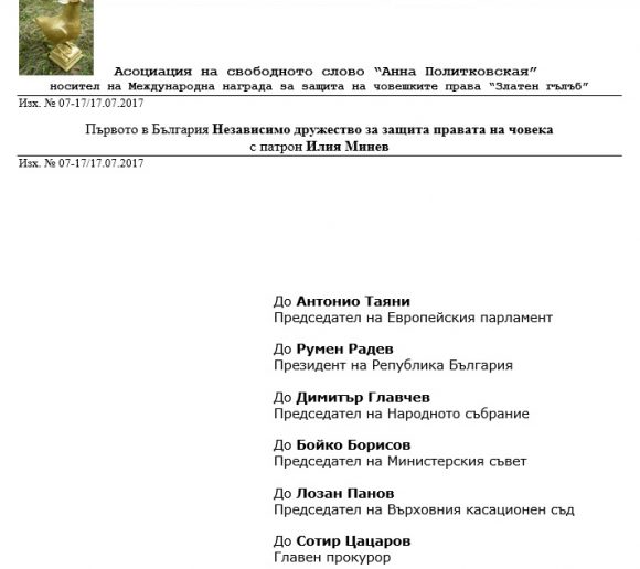 от Петър Пенчев, член на Обществения съвет на Асоциация на свободното слово “Анна Политковская”