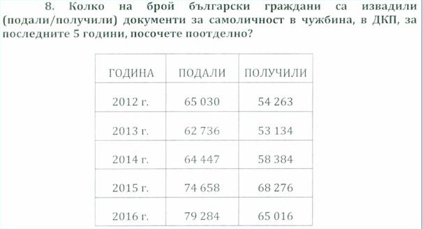 - Проблеми, свързани с адресната регистрация и издаването на документи за самоличност на български граждани, живеещи извън Република България.