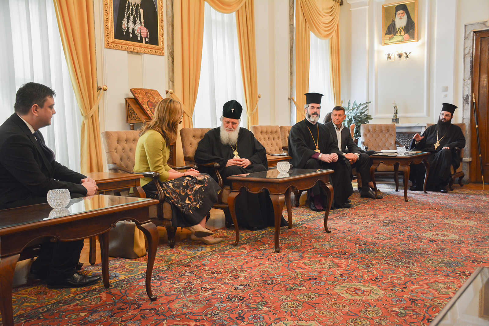 Екатерина Захариева изтъкна ролята на Църквата за запазването на българския дух и самосъзнание на големите български общности зад граница. Тя благодари на Негово Светейшество за усилията, които се полагат от страна на представителите на Българската църква зад граница и работата, която извършват, както в храмовете, така и в сътрудничество с мрежата от български училища извън страната.